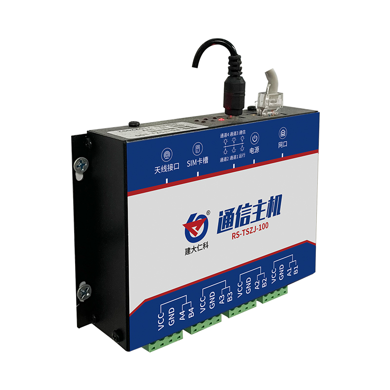 通信主机主要用于平台与传感器设 备之间的通信连接,可网口或4G上 传数据,供电10~30V, 4路下行485接 口,每路接口可单独设置不同的波特 率,最多可接255台485设备。