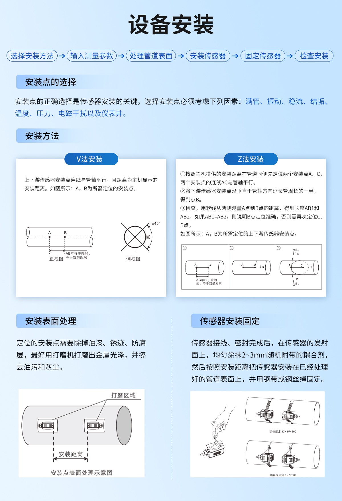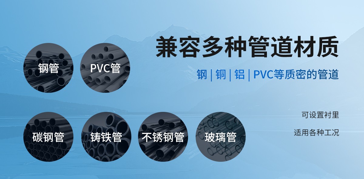 | 管道情况 | 管材 | 钢、铜、铝、PVC等质密的管道,可设置衬里 |