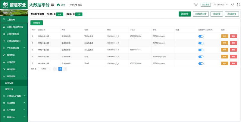 超限报警:当环境监测数据超过设定上下限值时可以进行报警。
