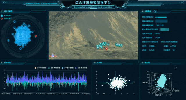 除以上功能,环境监控云平台还利用机器分析、深度学习等算法,构建高精度、高稳定性的地质灾害预测模型,研发出针对水文地质灾害行业的GNSS大屏可视化、降雨量/蒸发量分析等界面,可满足气象局要求。