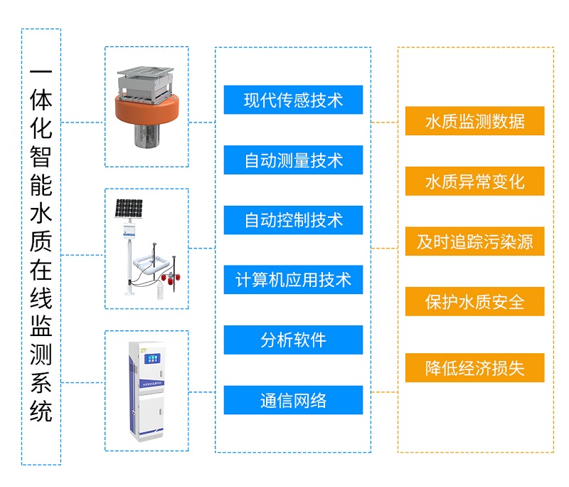 一体化智能水质在线监测系统是一套运用现代传感技术、自动测量技术、自动控制技术、计算机应用技术、相关的分析软件及通信网络组成的一个综合性在线自动监测体系,可以为用户提供水质监测数据,使用户尽早发现水质的异常变化,及时采取应急措施、追踪污染源,保护水质安全。