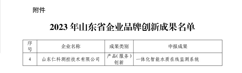 其中,山东仁科测控技术有限公司自主研发的“一体化智能水质在线监测系统”在众多竞品中脱颖而出,荣获“2023年山东省企业品牌创新成果”称号