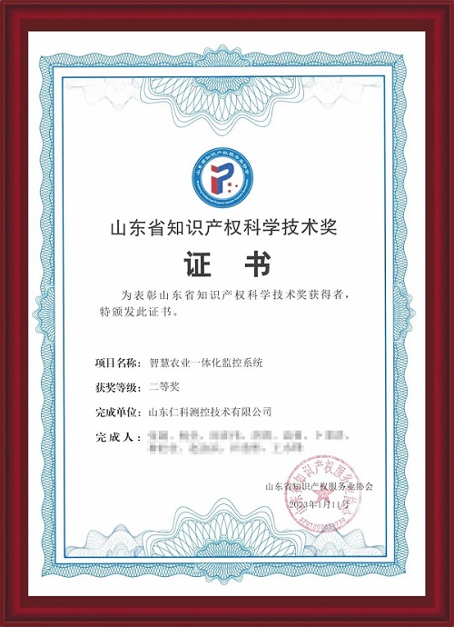 山东仁科【智慧农业一体化监控系统】荣获“2022年度山东知识产权科学技术奖”二等奖。