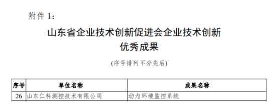 山东仁科测控技术有限公司所研发的“动力环境监控系统”荣获山东省企业技术创新“优秀新产品三等奖”。
