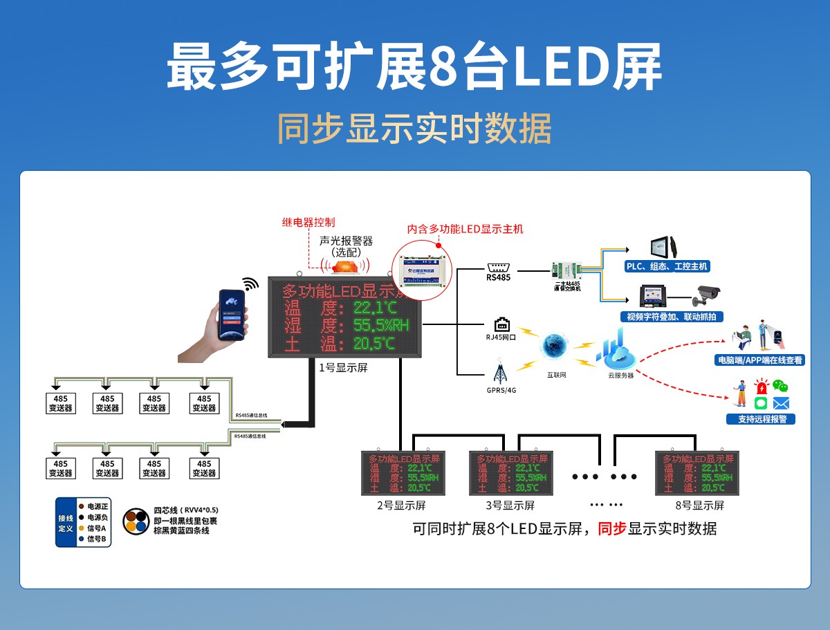| 数据采集通信接口 | RS-485 | 采用ModBus-RTU协议采集传感器的数据,最长通信距离≥1500m |