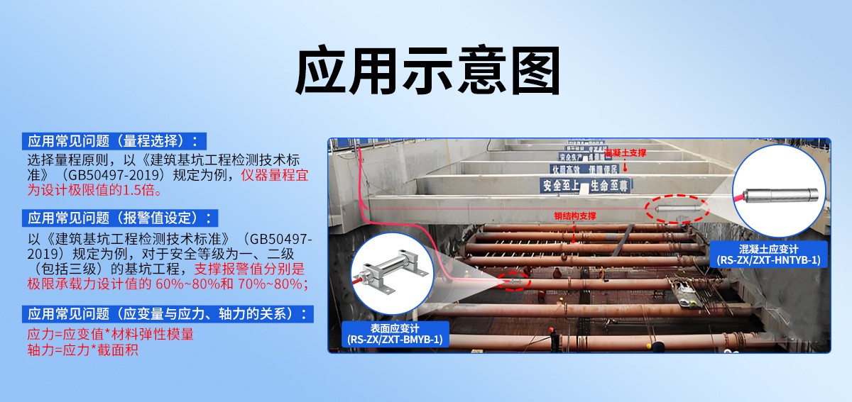振弦式应变计可长期埋没于“支护结构物内部”或固定于“支护结构物表面”测量支护结构物的应变量,加装配套附件可组成多向应变计组、无应力计、岩石应变计。若加装温度传感器即可同步测量安装点的温度,搭配我公司振弦式传感器采集器可实现对现场传感器实时数据进行采集并转换 485/4G/NB/LoRa 等数据传输方式上传。