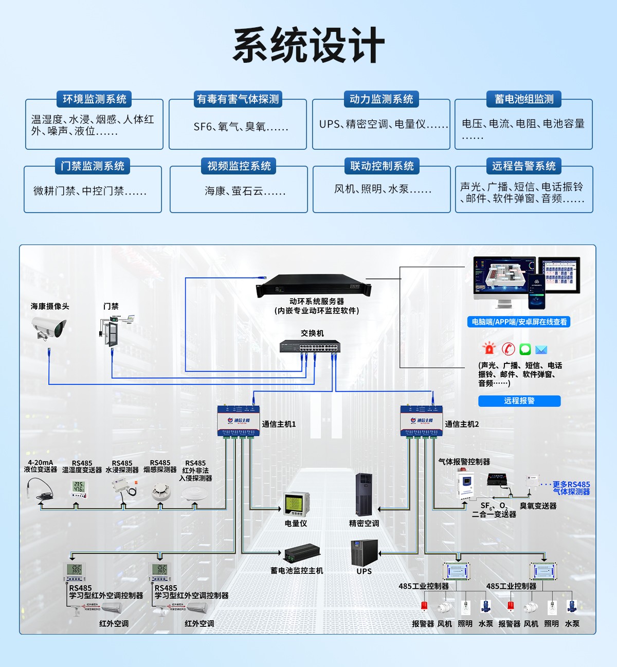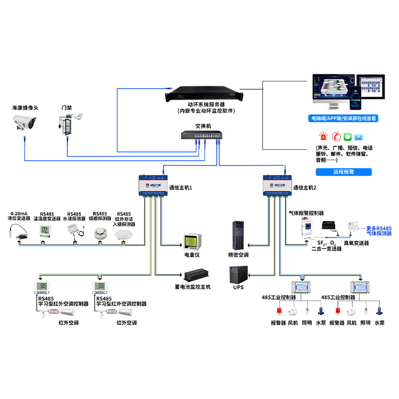 动环监测系统通过智能化监测手段,对机房/档案馆/配电室等场合的动力系统、环境系统、安防系统、门禁系统、视频系统”进行集中监测及远程控制。通过长期、稳定、不间断的运行监测,实现异常情况及时告警、记录,提前预知事故风险,从而保障监测场合的正常运维,提高管理水平,减少事故发生。