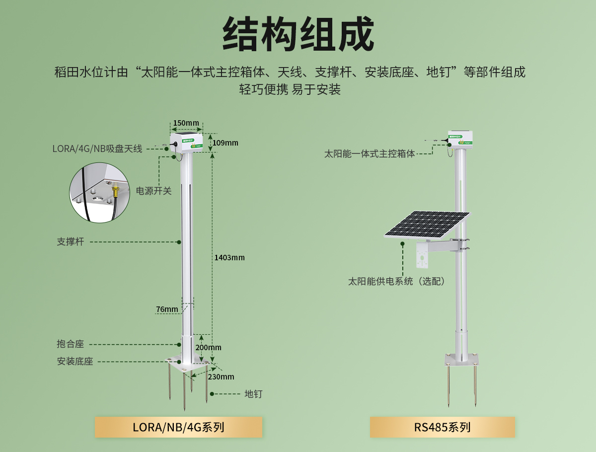 | 供电 | 4G/NB/LoRa:内置可充电锂电池,自带太阳能板充电 485型:DC10-30V |