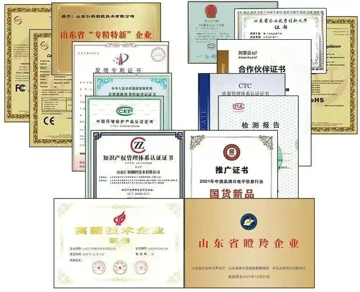荣誉是成就的结果,成就源于不屈不挠的努力和坚韧不拔的毅力。山东仁科作为国内知名环境监测解决方案制造商,自公司成立以来,便始终坚持技术创新与市场需求相结合的发展策略,凭借深厚的专业知识,结合积累的行业经验,不断推陈出新,为市场带来了一系列高性能、高质量产品(例如:温湿度传感器、水质传感器、气体系列传感器、工业系列传感器、土壤系列传感器、气象系列传感器等),获得多项荣誉证书。