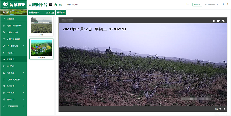安全是农业生产的重要保障。智慧农业大数据平台可集成高清摄像头等监控设备,为农业生产增添了一双 “千里眼”。遍布园区各个角落的摄像头,无论是田间地头,还是养殖区域、仓库等,都能24h进行全方位、无死角的实时监控。用户可以通过平台查看各个区域的实时画面,确保生产安全,实现及时调度。