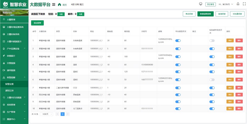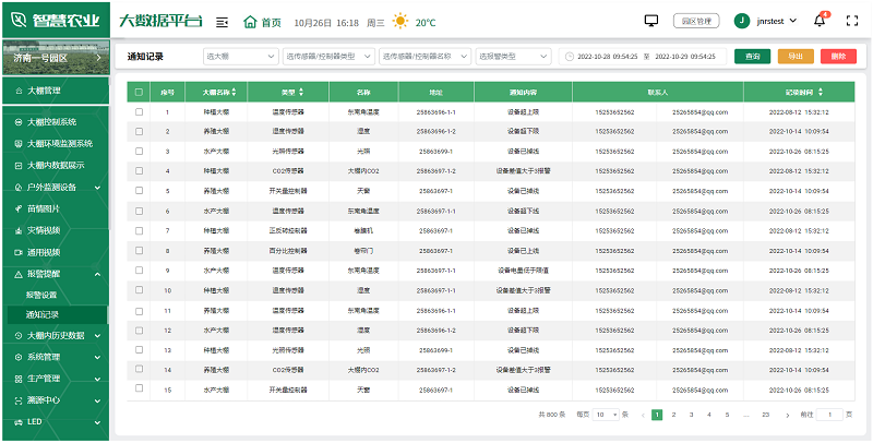 超限报警:当环境监测数据超过设定上下限值时可以进行报警。