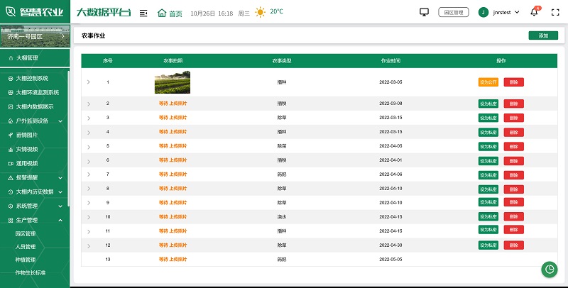 生产管理是智慧农业大数据平台的核心功能之一。通过集成各种生产管理系统,平台实现了对农业生产全过程的数字化管理。从种植、施肥、灌溉到收获,每个环节都可以在平台上进行记录和管理。平台支持农事任务分配、人员管理、农机管理、物料管理、为作物设置生长标准等功能,帮助管理者优化生产流程,提高工作效率。