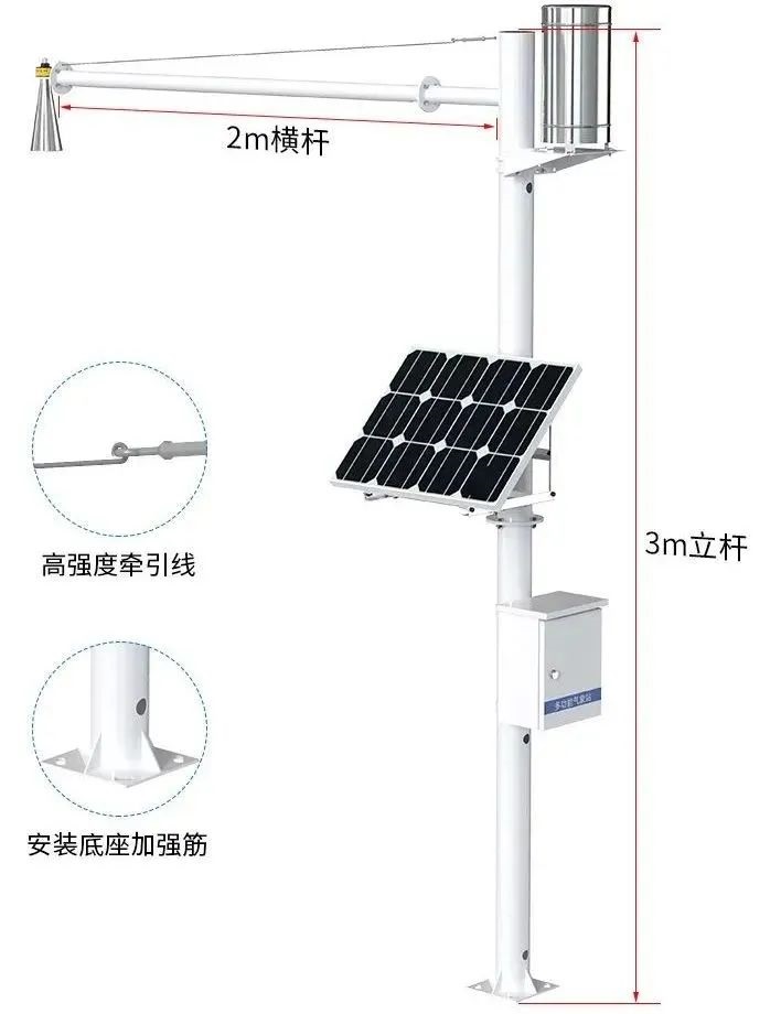 山东仁科水雨情在线监测站采用了标准“3m立杆+2m横杆”设计,增加高强度牵引线,保障雷达水位计/雷达流量计始终处于水平位置,解决了“水雨情在线监测站横杆由于长时间使用,会逐渐出现5-7mm的向下倾斜,导致测量精度降低”的问题。