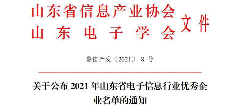 为鼓励先进,树立典型,根据《山东省电子信息行业优秀企业评审管理办法》的规定,本着“公正、公平、公开”的原则,各市工信局推荐,企业积极自主申报,最终遴选出领军企业5家、标杆企业12家、最具发展潜力企业13家、最具社会责任企业15家、优秀企业22家,共计67家入选2021年山东省电子信息行业优秀企业。