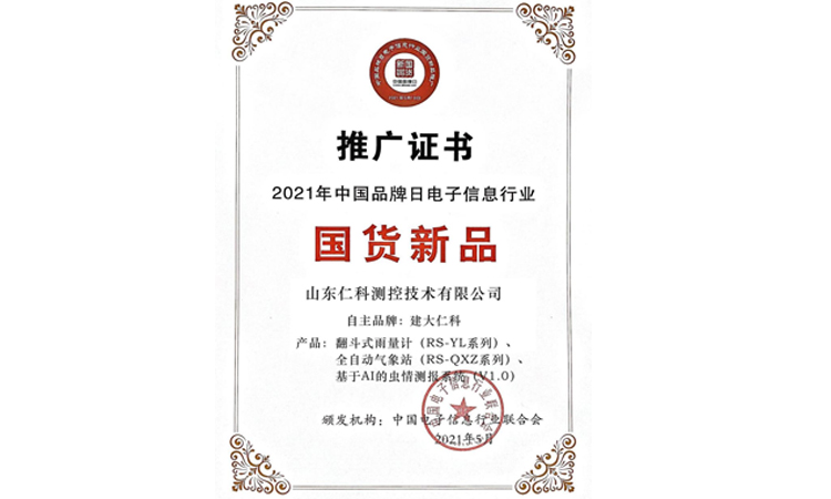 凭借良好的产品性能,完善的软件功能,优质的客户服务,山东仁科测控技术有限公司旗下自主品牌“建大仁科”产品翻斗式雨量计(RS-YL系列)、全自动气象站(RS-QXZ系列)、基于AI的虫情测报系统(V1.0)三款产品成功入选《2021年中国品牌日电子信息行业国货新品推广目录》。作为国内环境监控终端制造商及解决方案提供商,我司一直致力于传感器的“原创性开发”,此次入选中国品牌日“国货新品”的3款产品,便是公司坚持自主研发的重要成果。