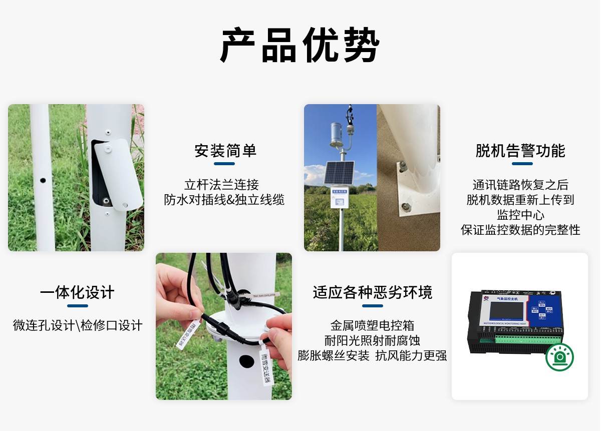 农业气象站集风速、风向、空气温湿度、大气压力、光照强度、降水量等多个气象监测设备于一体,可实现对农田气象环境的24小时实时监测,为合理配置农业生产、确定耕作制度和栽培方式提供精准的数据支持,提前采取措施预防气象灾害,在人为的干预下趋利避害,达到高产丰收的目的。