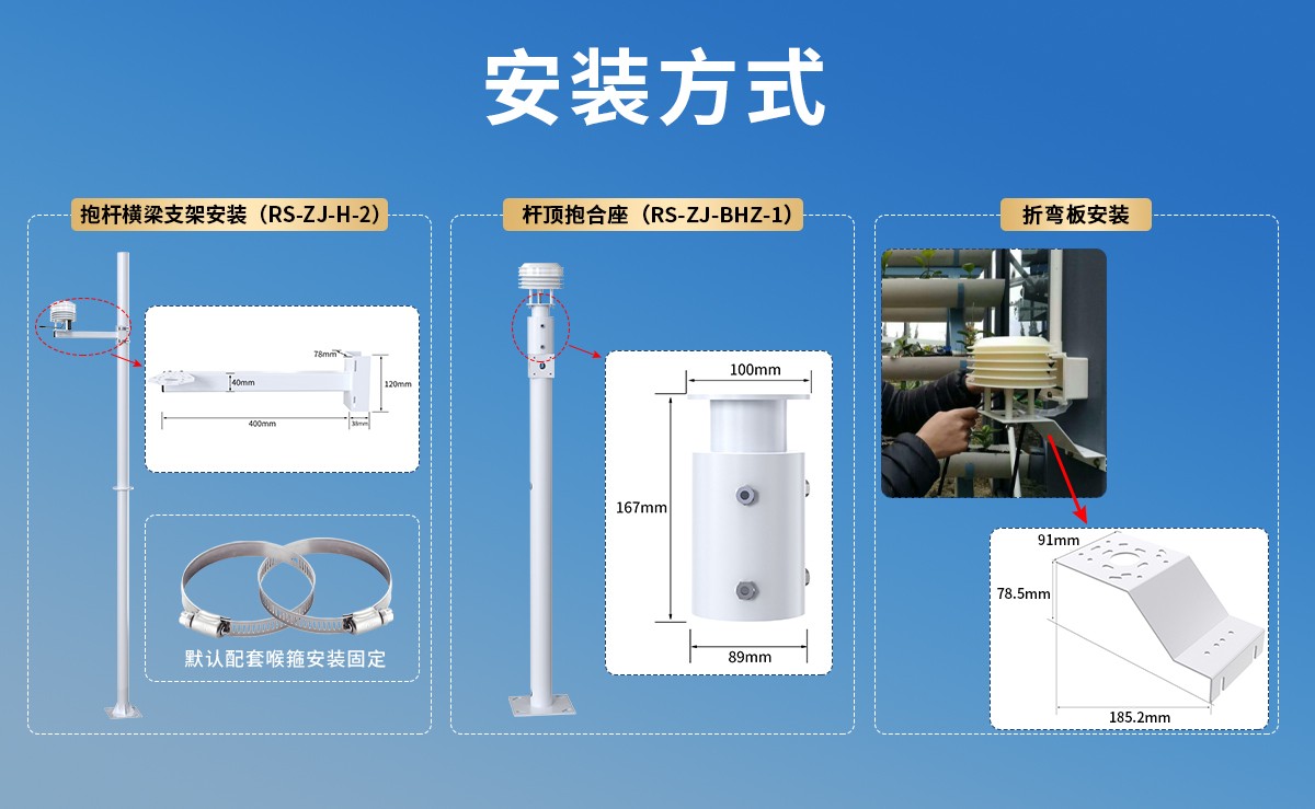 气象多要素百叶盒传感器可广泛适用于环境检测,将传感器安装在百叶盒内,广泛适用于需要测量环境温湿度、噪声、空气质量、大气压力、光照等各种场合。设备采用标准ModBus-RTU 通信协议,RS485信号输出,通信距离最大可达2000米(实测)。
