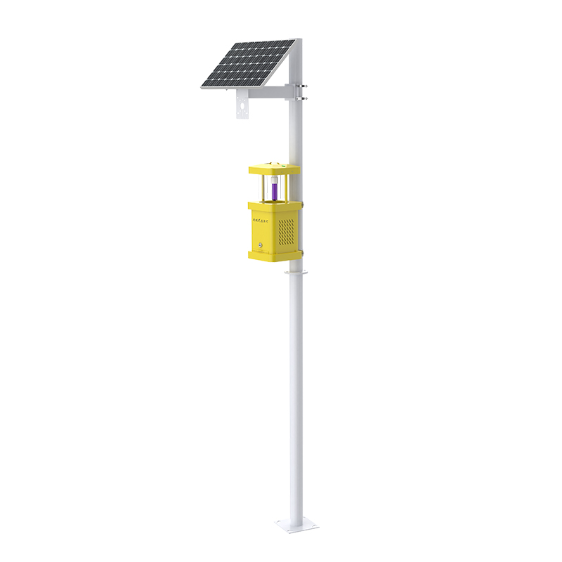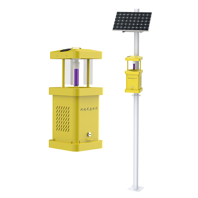 风吸式杀虫灯是一款物理灭虫器械,利用光波引诱害虫成虫扑灯,然后风机转动产生负压气流将虫子吸入到收集器中,使之风干、脱水,达到杀虫的目的。我司开发的风吸式杀虫灯,改进了光源和杀虫方法,突破了用常规杀虫灯杀灭小害虫的能力,大大提高了害虫的杀灭效率。