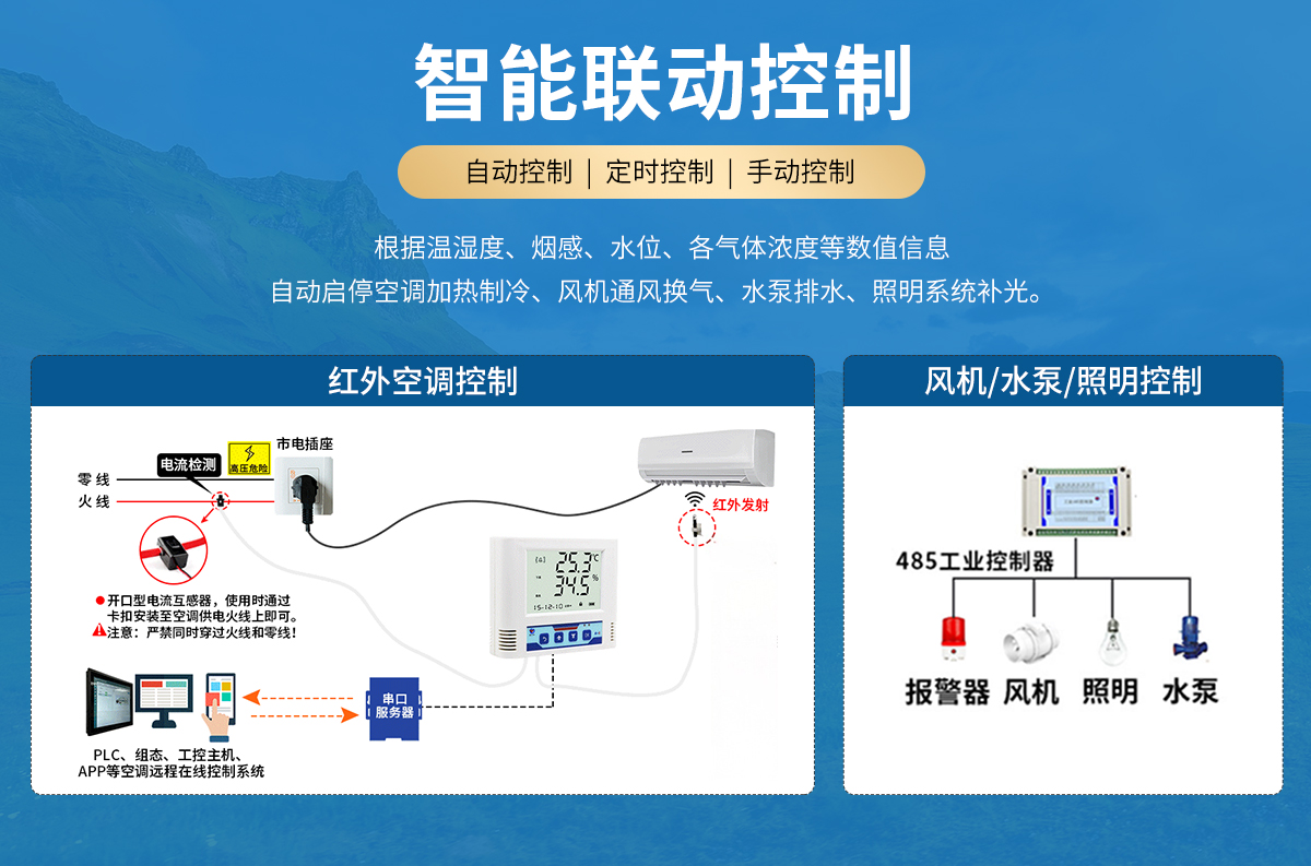 小型机房/配电室环境监控系统是一个综合利用计算机网络技术、数据库技术、通信技术、自动控制技术、新型传感技术等构成的系统,通过对机房内的温湿度、漏水、烟雾、红外入侵、空气质量等进行监控,建立一套较完整的机房环境监控管理体系。