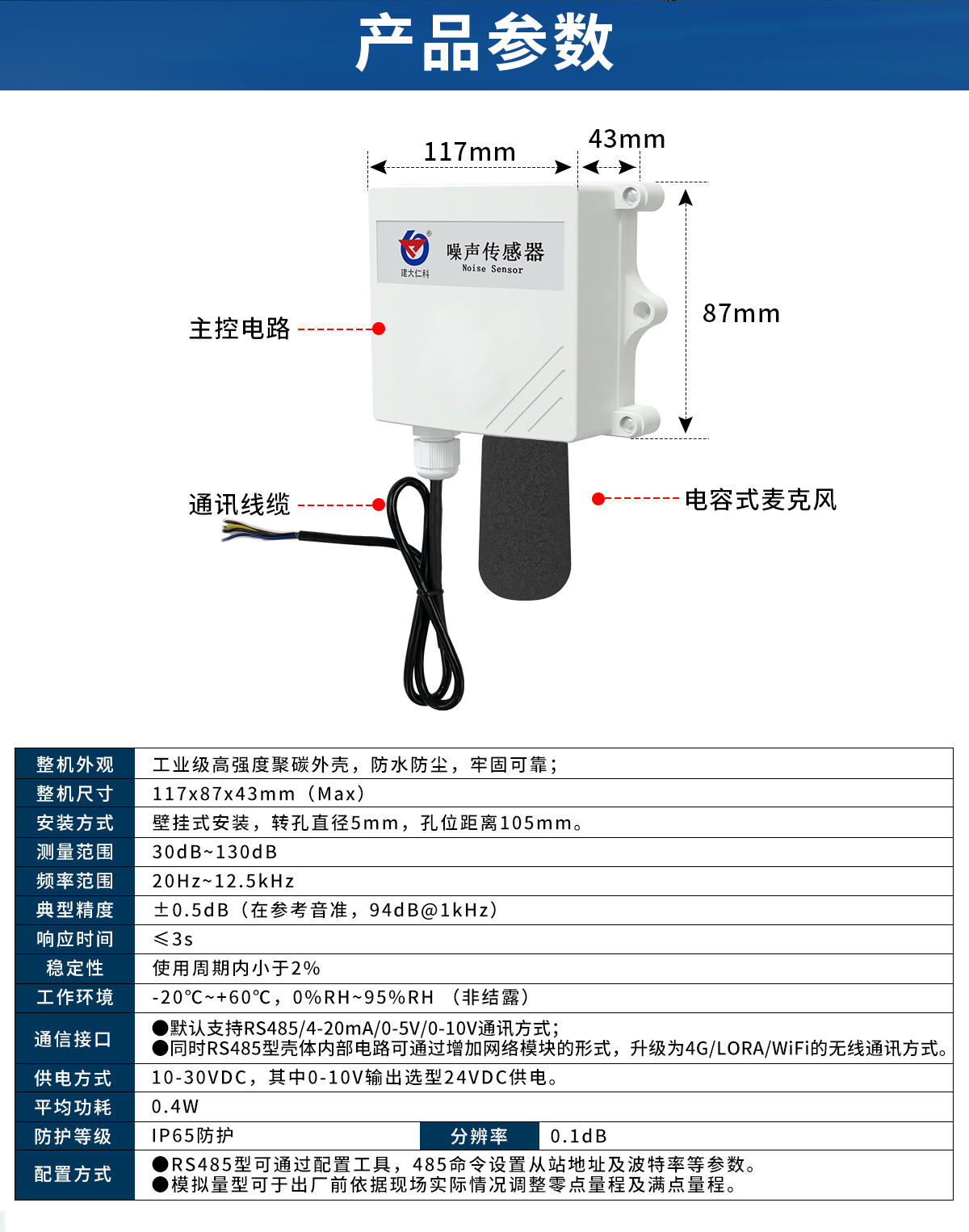 噪声精度 | ±0.5dB(在参考音准,94dB@1kHz) |